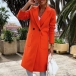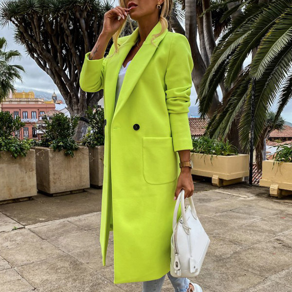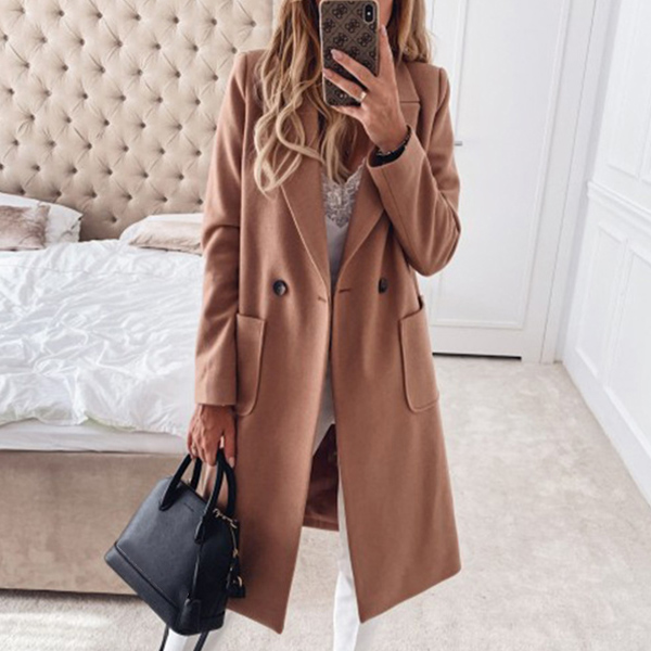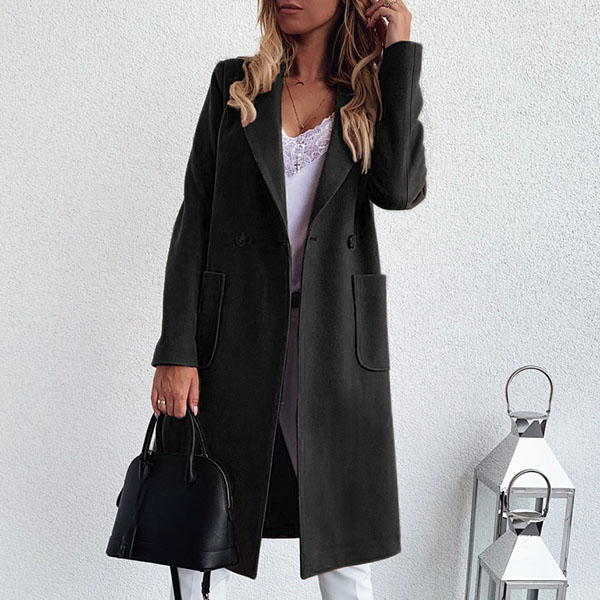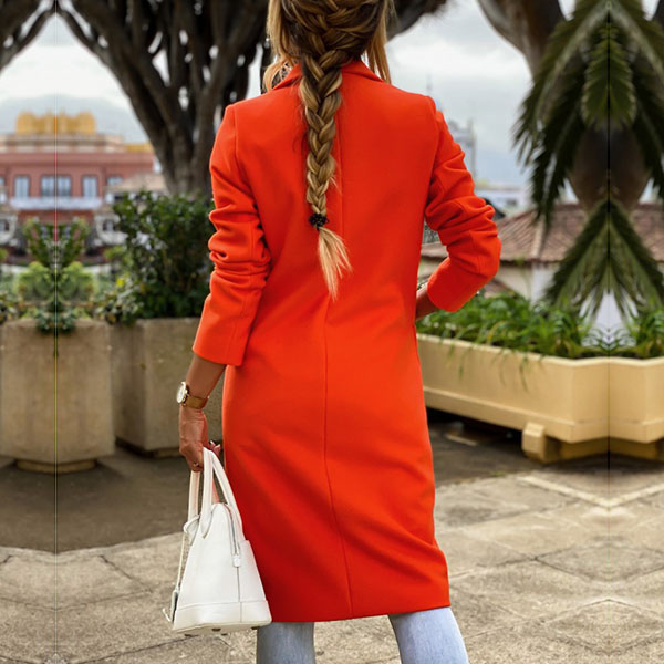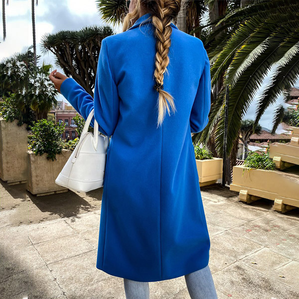 Fashion Solid Color Long Sleeve Notched Lapel Woolen Coat