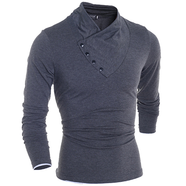 and breathable fabric,with long sleeve,oblique button and a fit silhouette,this wonderful t-shirt can promise