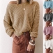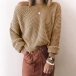 Fashion Solid Color Long Sleeve Oblique Shoulder Loose Knit Top Sweater