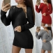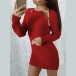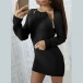 Fashion Solid Color Long Sleeve Oblique Zipper Slim Fit Sweater Dress
