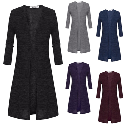 Fashion Solid Color Long Sleeve Open-front Slim Fit Knit Cardigan