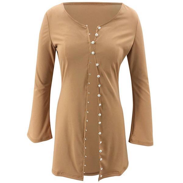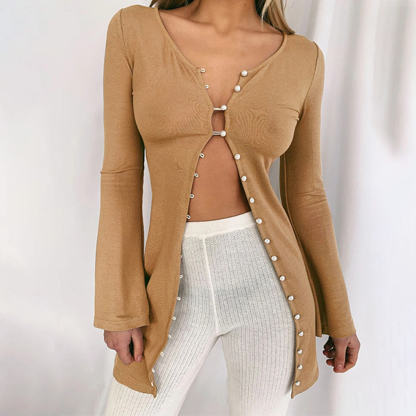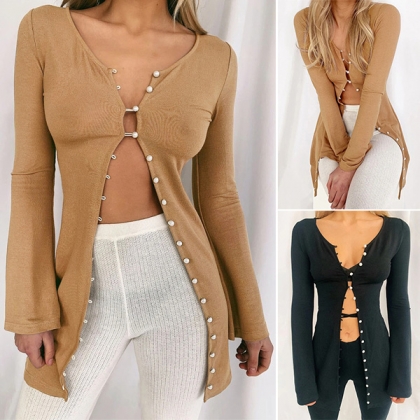 For these autumn days,this cardigan can be your wise choice. It boasts a solid color,crafted from soft and breathable fabric,which can keep you warm and comfy. Moreover,the pearl button design will make this piece look more attractive. Just invite this piece to your wardrobe!