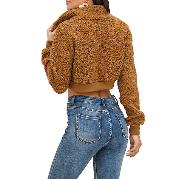 Fashion Solid Color Long Sleeve Plush Crop Top Sweatshirt