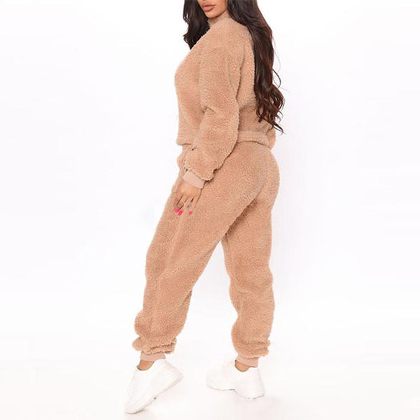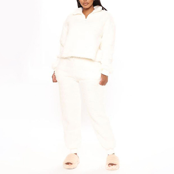 Fashion Solid Color Long Sleeve Plush Top + Pants Two-piece Set