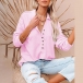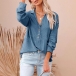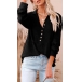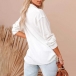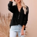 Fashion Solid Color Long Sleeve POLO Collar Front-button Loose T-shirt