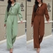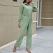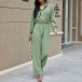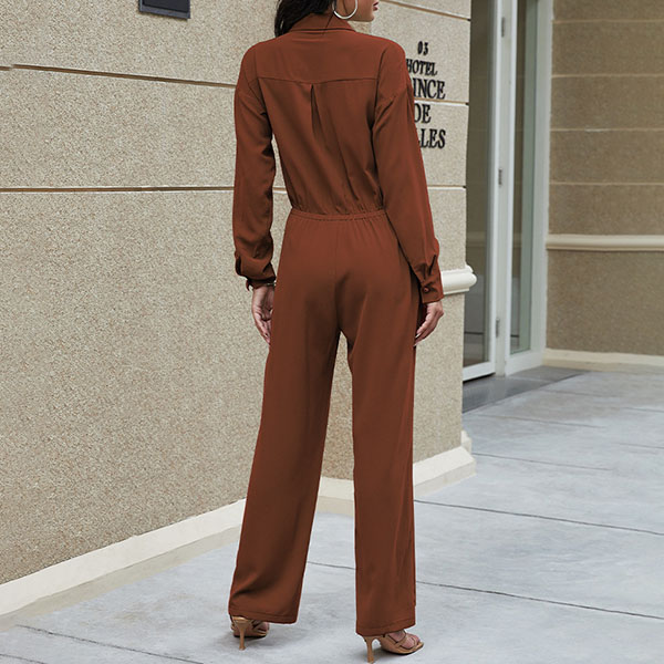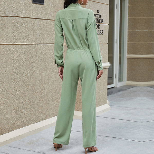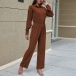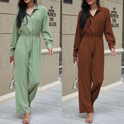 Fashion Solid Color Long Sleeve POLO Collar High Waist Jumpsuit