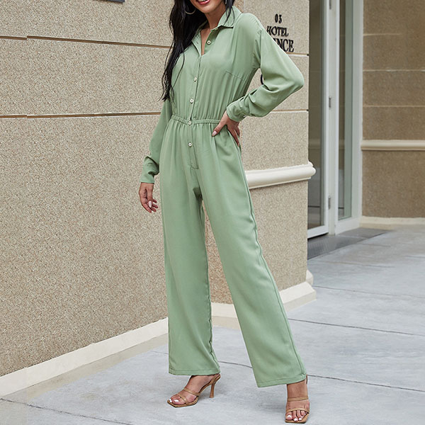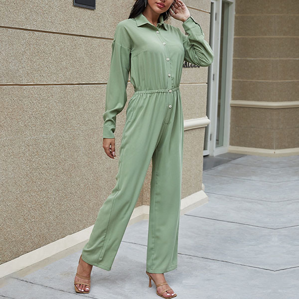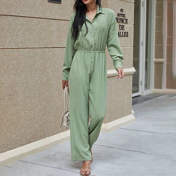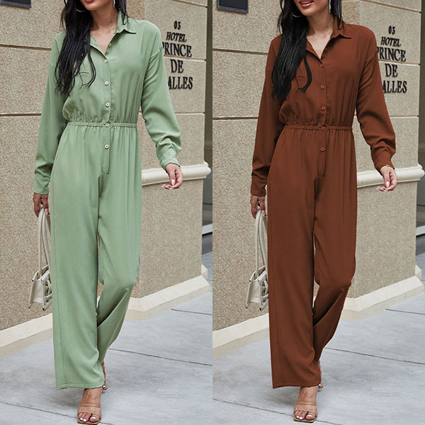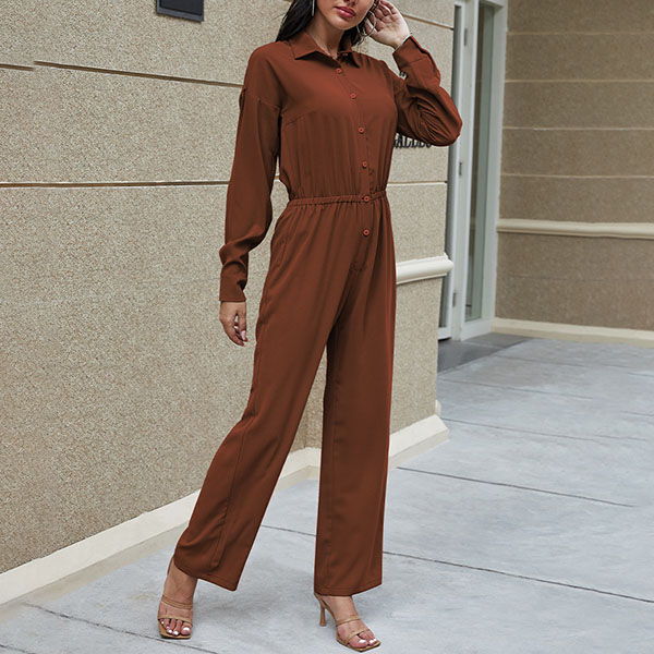 You are sure to gain more eyes when you go out with this jumpsuit. It boasts a solid color,finished with long sleeve and POLO collar design,this jumpsuit can offer you a comfortable day with its soft and breathable fabric. Moreover,the high waist and clean silhouette design can showcase your slender figure. Like this piece? Then add it to your wardrobe!