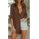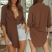 This shirt that looks not so dull and formal is your perfect choice on your casual days. Solid color style,its soft,breathable fabric and loose silhouette design can give you an all-day comfort,while the irregular hem design will further enhance its entire charm. So why take interest in it?