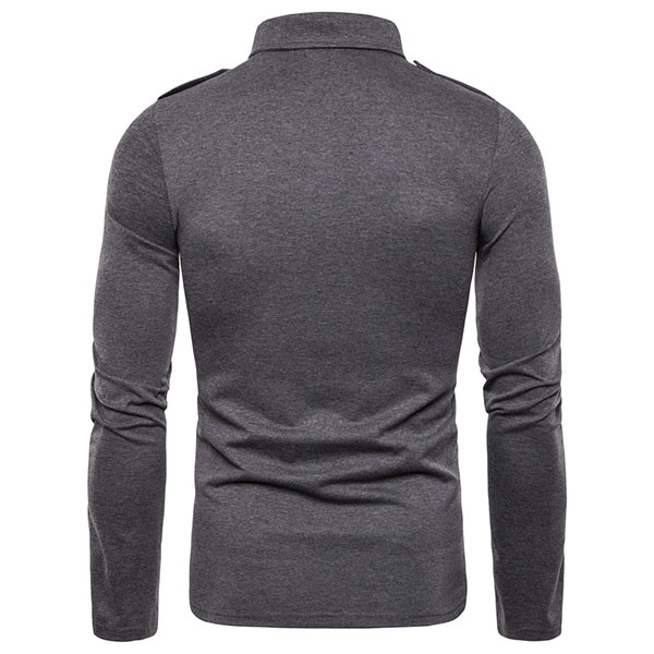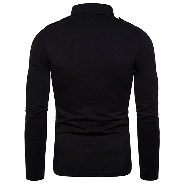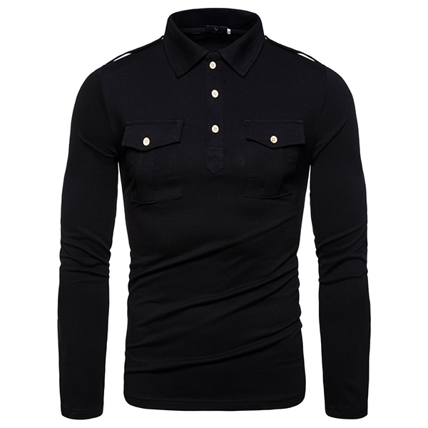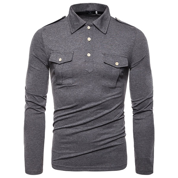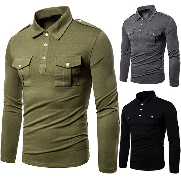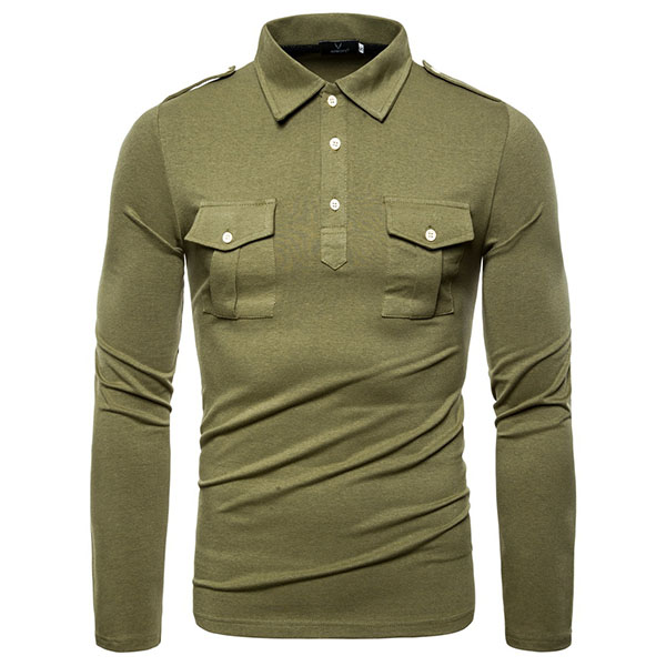 This t-shirt comes with a solid color,simple,stylish yet generous. Finished with long sleeve,POLO collar and chest pockets design,this piece can ensure you a comfortable day with its soft and breathable fabric. Try to match with your jeans or casual pants to have a laid-back but handsome weekend look.