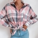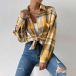 Fashion Solid Color Long Sleeve POLO Collar Plaid Shirt