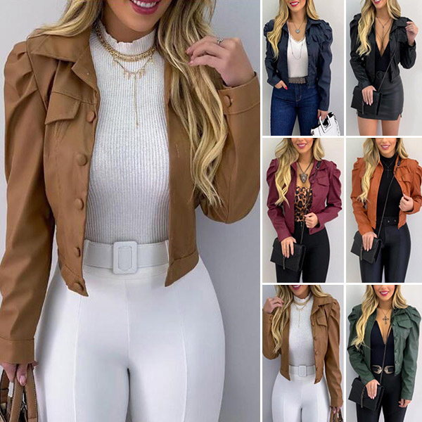 Need a piece to improve your temperament instantly? Give a chance to this piece. It comes with solid color and POLO collar, finished with decorated buttons and long sleeve. Crafting from high quality PU fabric, adding the special design on the shoulder, it can make you look stylish and full of energetic.