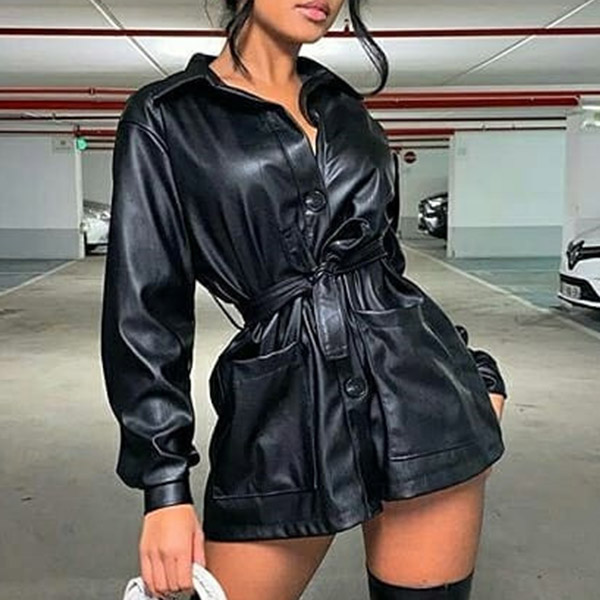 For a cool and fashionable daily look,you can just slip into this PU leather jacket. Solid color style,finished with long sleeve and POLO collar design,classic yet stylish. The waist strap design will make this piece look more attractive. Your style and charm can have an instant boost when you don this piece.