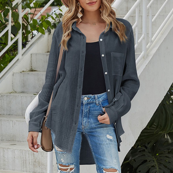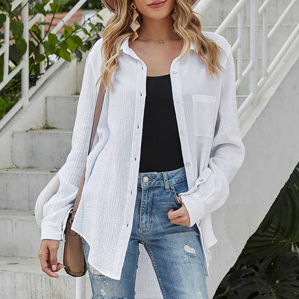 When you go out on these sun-soaked summer days,you can just slip into this piece to protect you from the sun as well as enrich your overall dress up. Solid color style,finished with long sleeve,POLO collar and high-low hem design,which make this piece look so chic and attractive. Attracted? Then buy one!