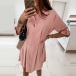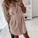 Fashion Solid Color Long Sleeve POLO Collar Shirt Dress