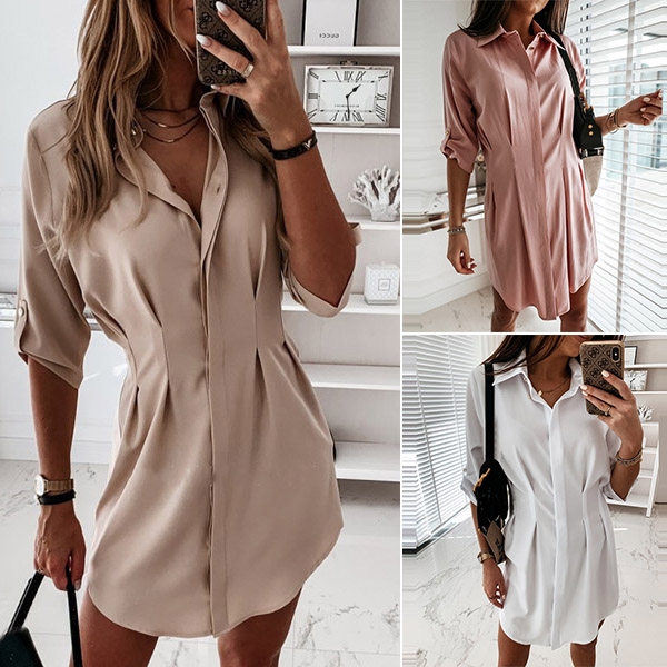 For your busy workdays,this delicate yet stylish shirt dress would be a good choice. It boasts a solid color,with long sleeve,POLO collar and an arc hem design,this shirt dress is sure to offer you a cozy yet stylish daily style. Dress it up with your favourite shoes to start your wonderful day.