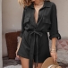 Fashion Solid Color Long Sleeve POLO Collar Shirt-style Romper