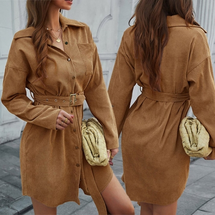 For different occasions,this versatile dress can be your perfect partner. Crafted in a solid color,with long sleeve,POLO collar and single-breasted design,classic yet stylish. Moreover,the waist strap design can enrich the design style as well as showcase your charm.