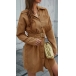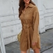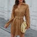 Fashion Solid Color Long Sleeve POLO Collar Single-breasted Dress with Waist Strap