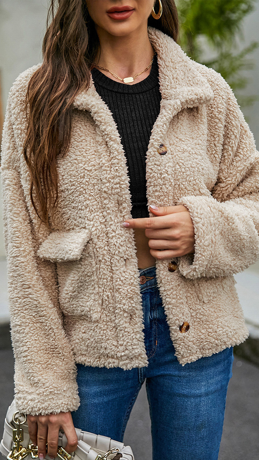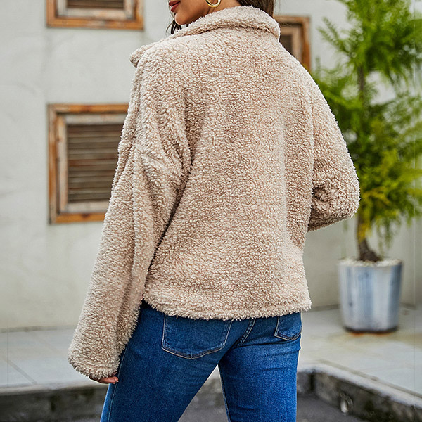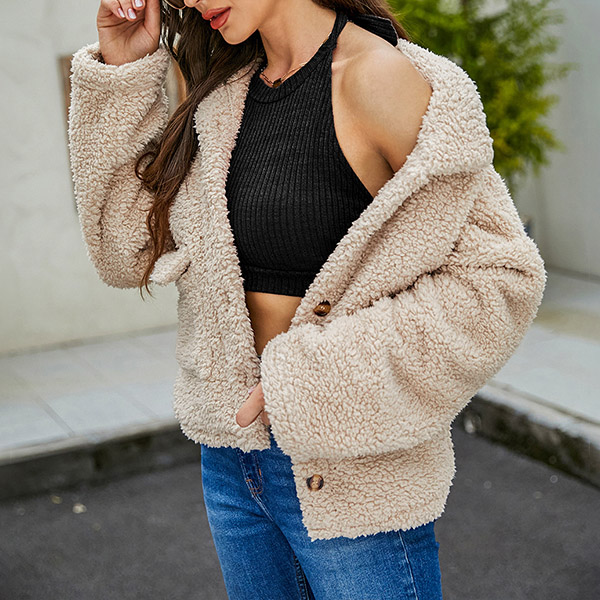 Fashion Solid Color Long Sleeve POLO Collar Single-breasted Plush Coat
