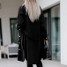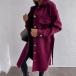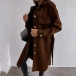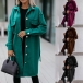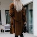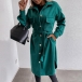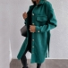 Fashion Solid Color Long Sleeve POLO Collar Single-breasted Woolen Coat with Waist Strap