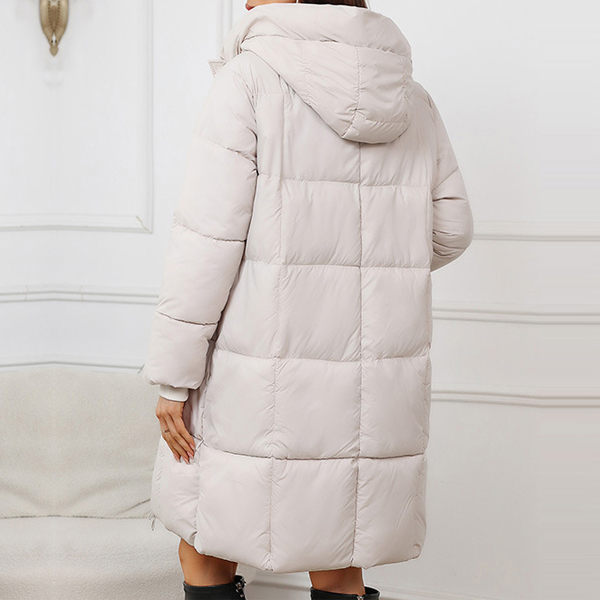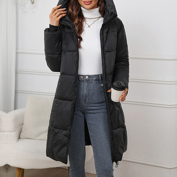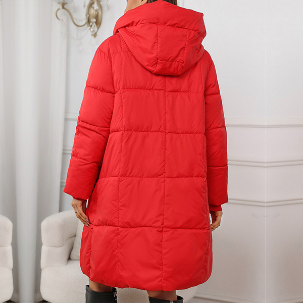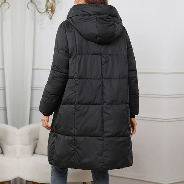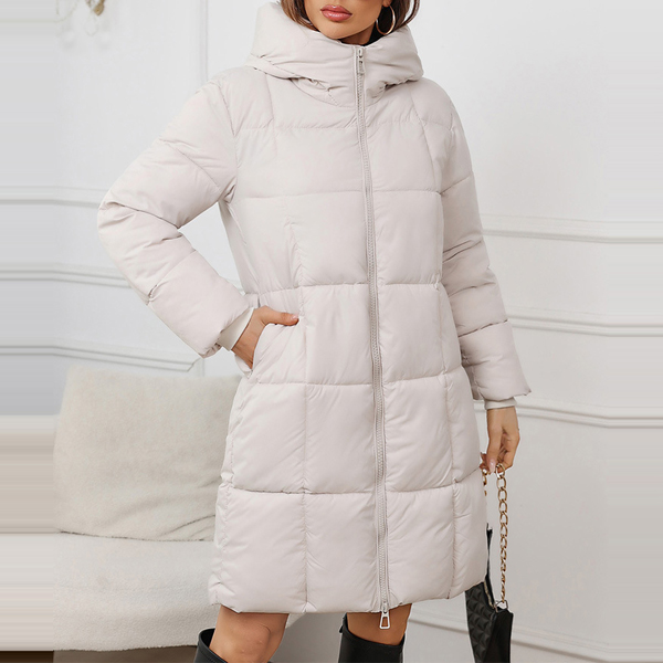 Fashion Solid Color Long Sleeve Quilted Hooded Coat