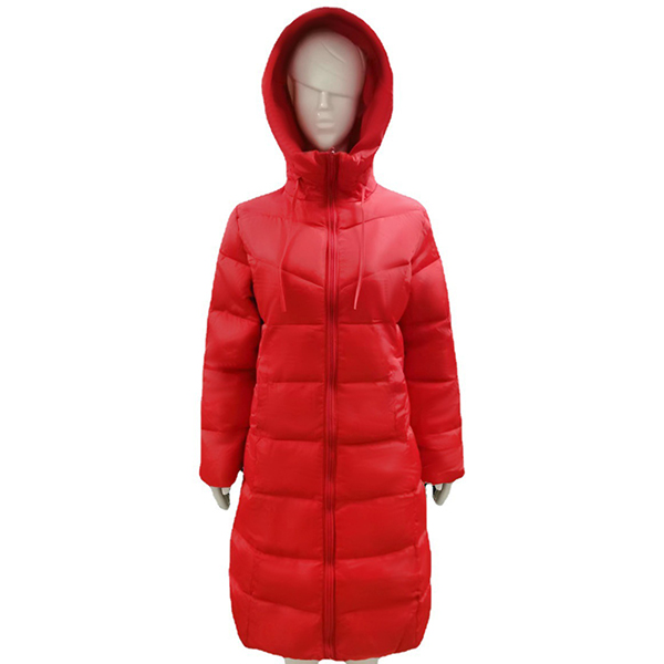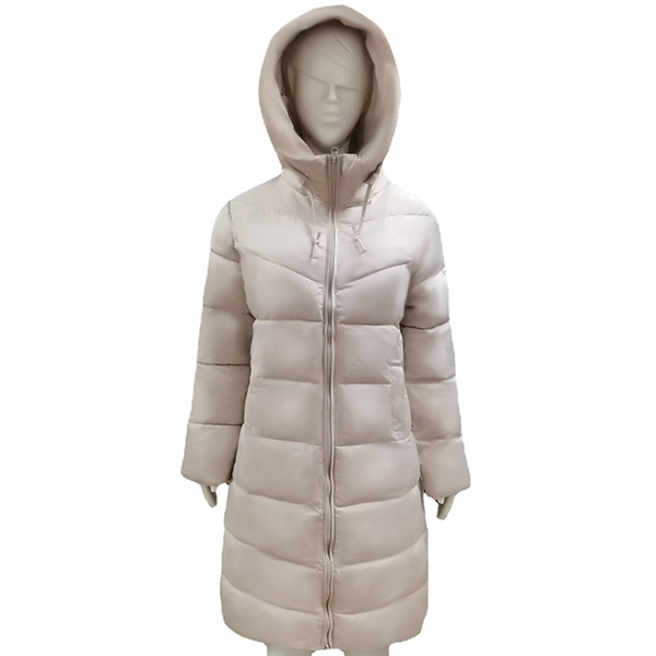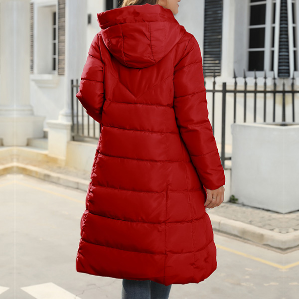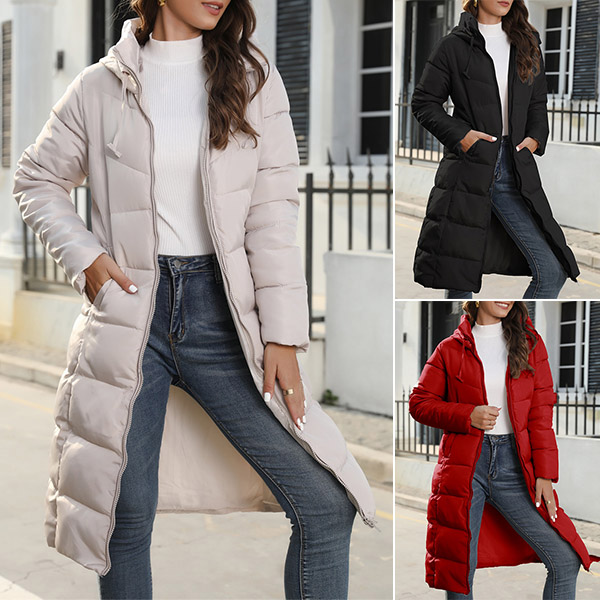 Fashion Solid Color Long Sleeve Quilted Hooded Longline Coat