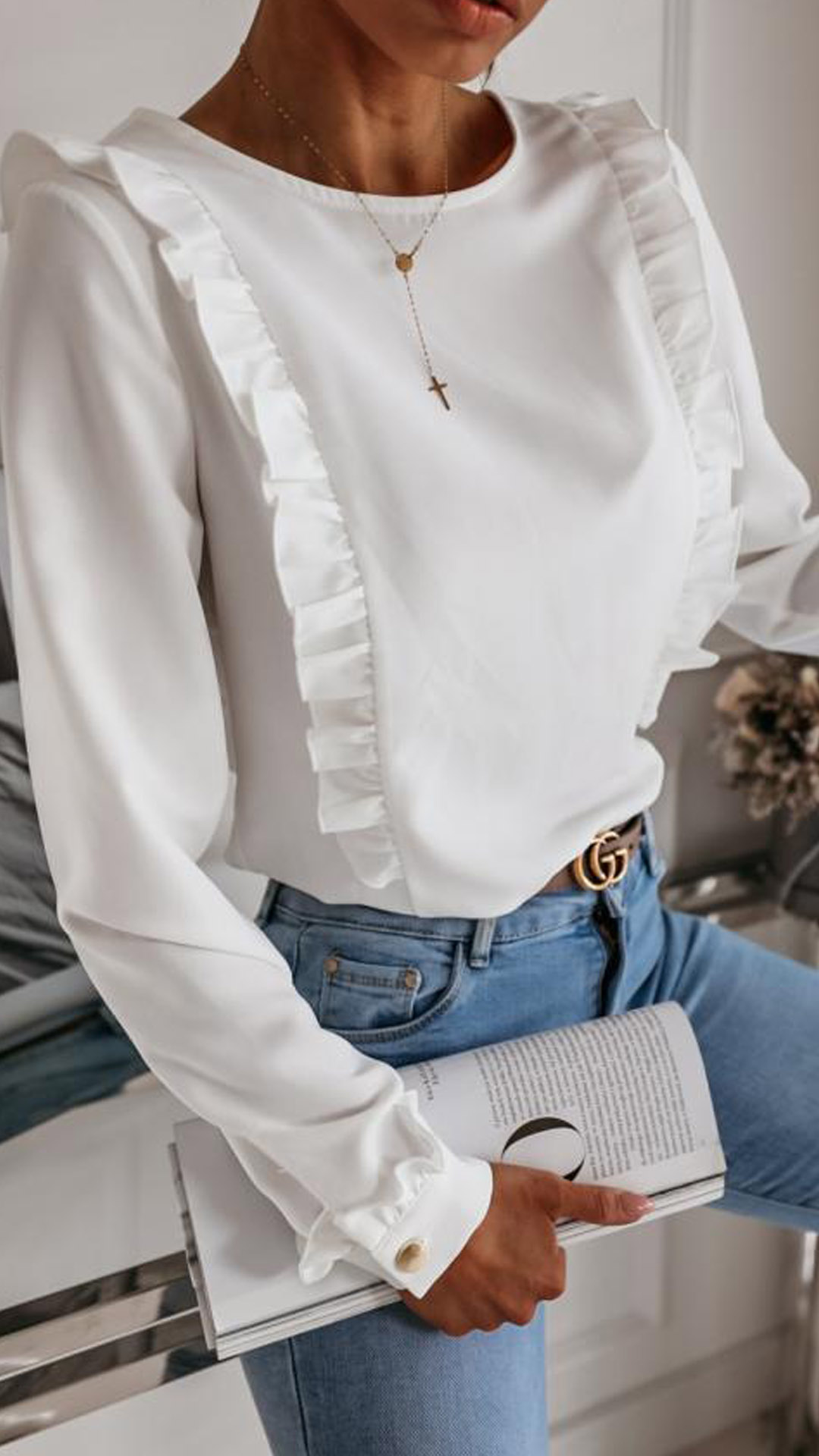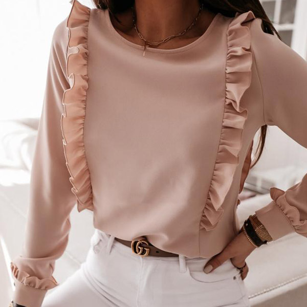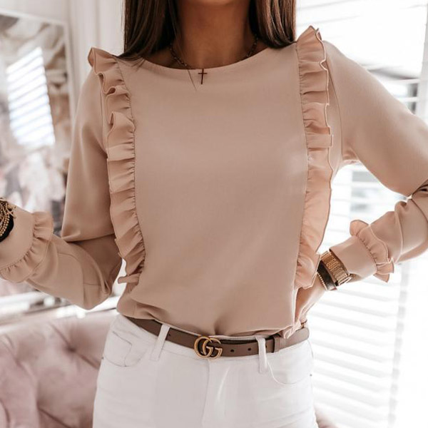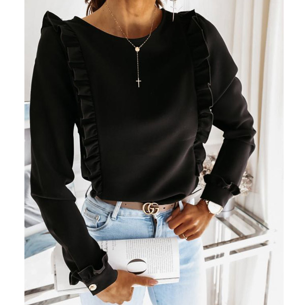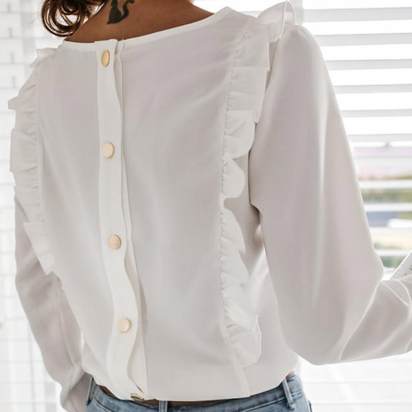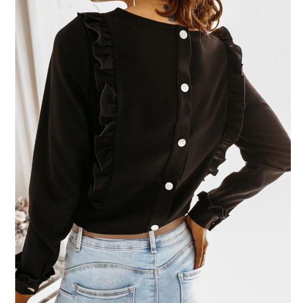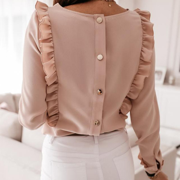 At your first sight,you would be attracted by this sweet yet stylish top. Solid color style,with long sleeve and round neck design,simple,classic yet stylish. Then what makes this piece look so attractive? It owes to the back-button details and ruffle design. Your style? Then invite it to your wardrobe!