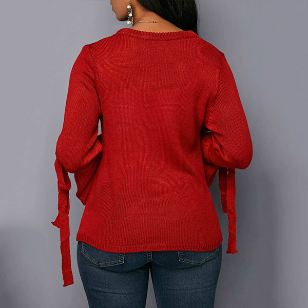 When the days get a little cold,this knit top can be your good partner. It comes with a solid color,the beaded details and lace-up design at the sleeve part make this piece look more distinctive and attractive. You can match with your favourite bottom to have a fashionable daily look.