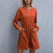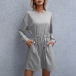 Fashion Solid Color Long Sleeve Round Neck Dawstring Waist Dress
