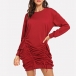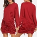 Fashion Solid Color Long Sleeve Round Neck Drawstring Dress