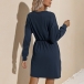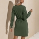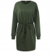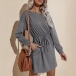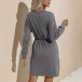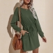 Fashion Solid Color Long Sleeve Round Neck Drawstring Waist Dress