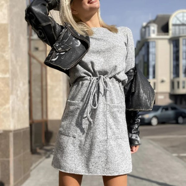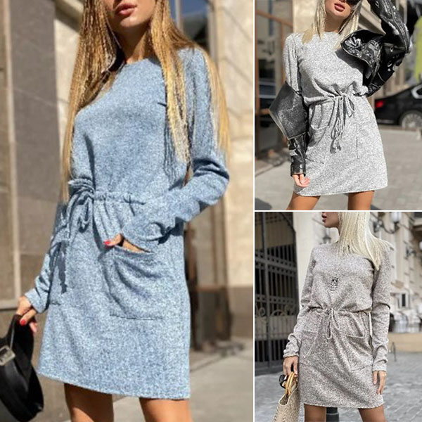 For your rushed mornings when you have no time to think about what to wear,you can just slip into this dress. It boasts a solid color,finished with long sleeve,round neck and a drawstring waist,this dress is sure to offer you a cozy yet stylish style. Just add this piece to your wardrobe.