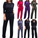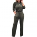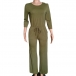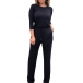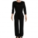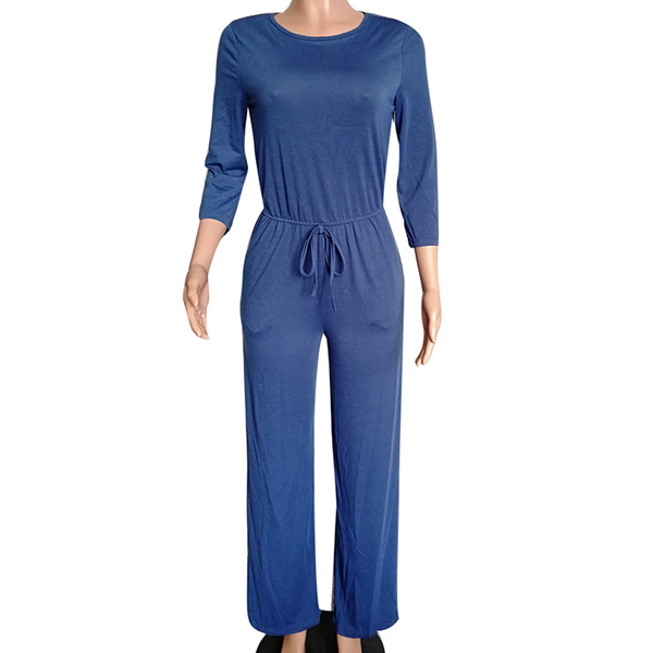 Fashion Solid Color Long Sleeve Round Neck Drawstring Waist Jumpsuit