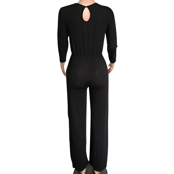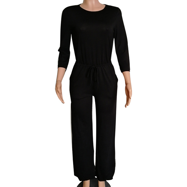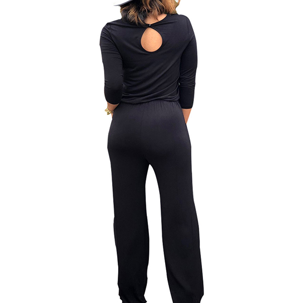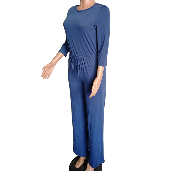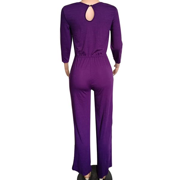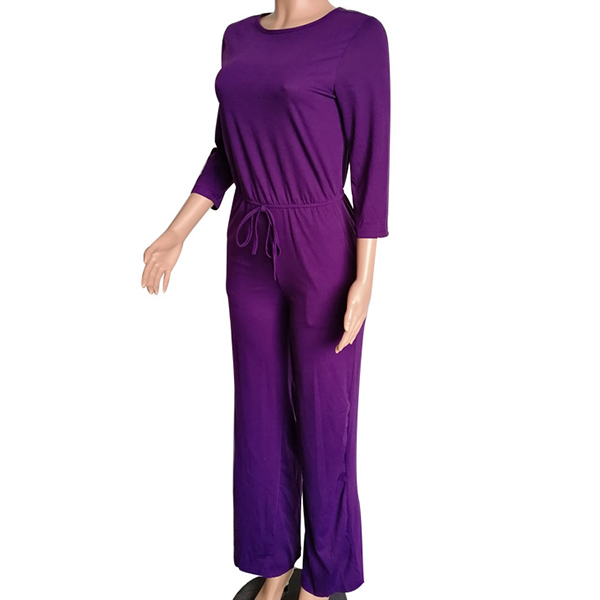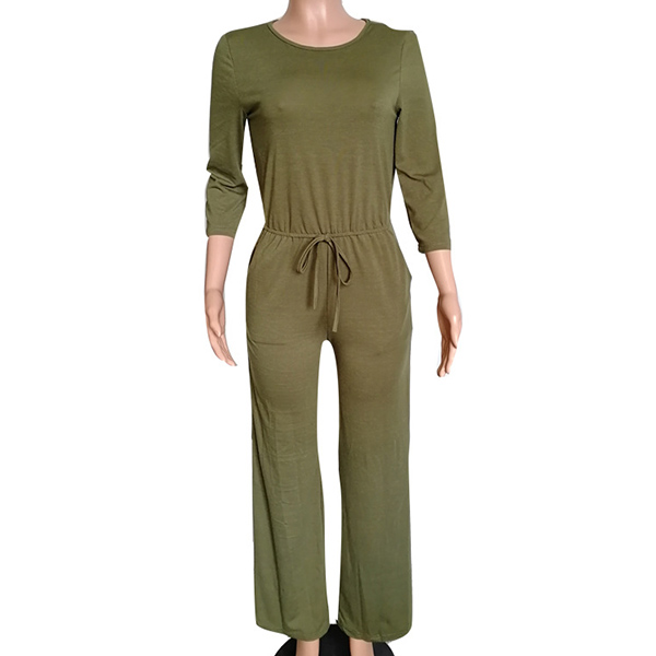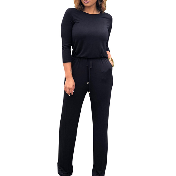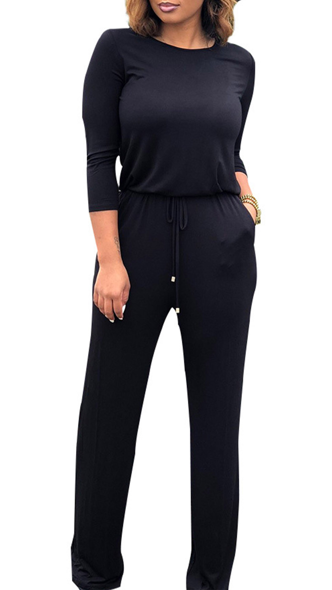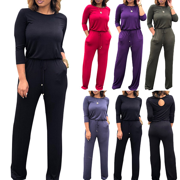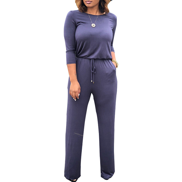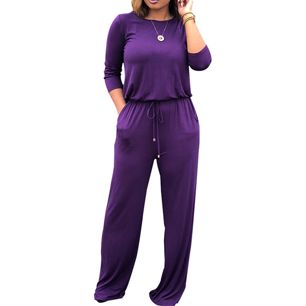Wanna try a different style outfit? Then you can make your eyes focused on this jumpsuit. Solid color style,finished with long sleeve,round neck and drawstring waist,this piece not only can showcase your slender figure,but also can give you an all-day comfort with its soft and breathable fabric.