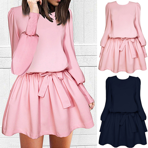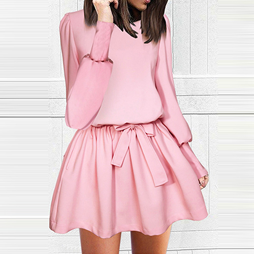 Solid color style,designed with long sleeve,round neck and crafted from soft and cozy fabric,this dress can make