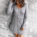 Fashion Solid Color Long Sleeve Round Neck Front-button Dress