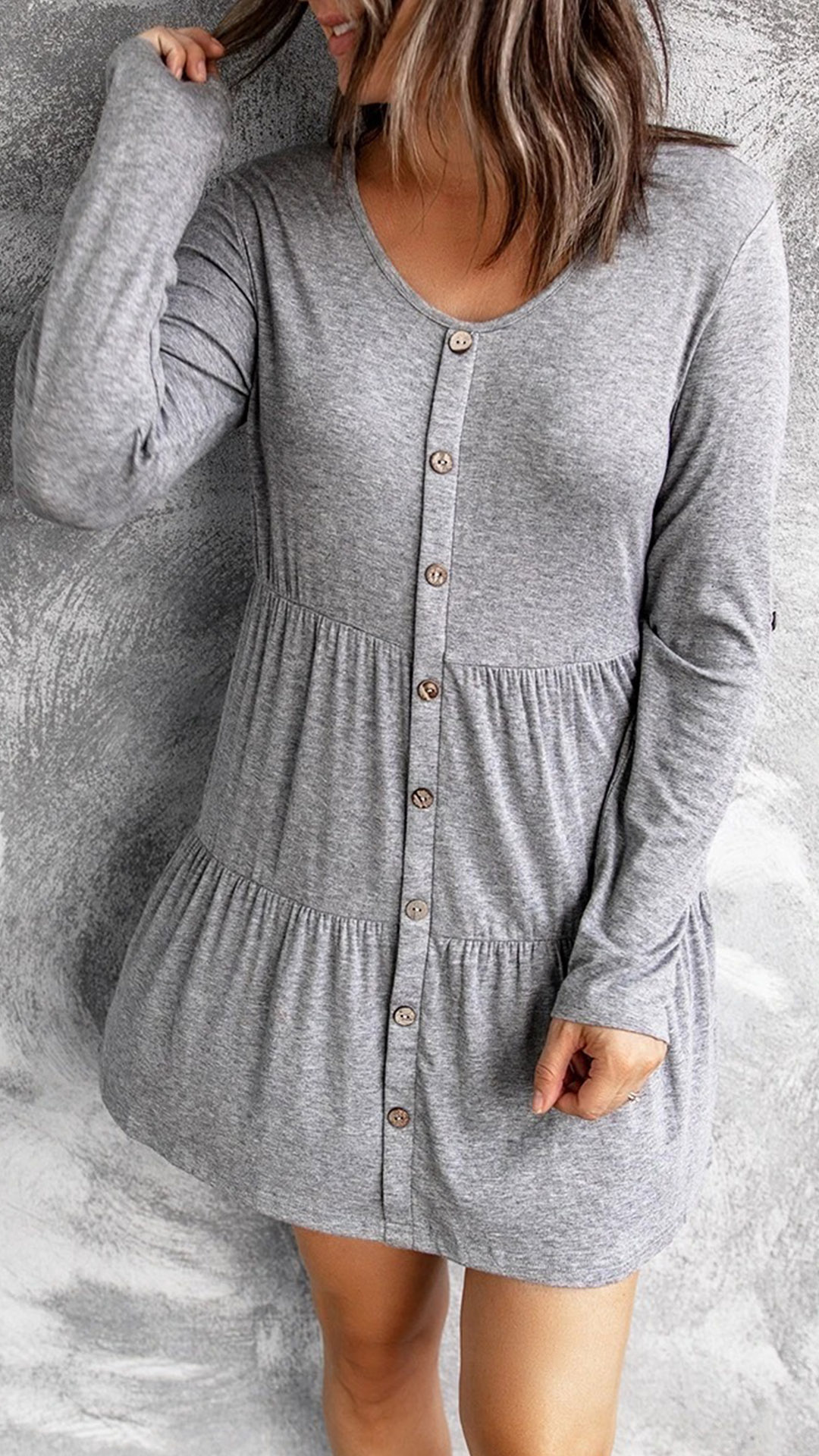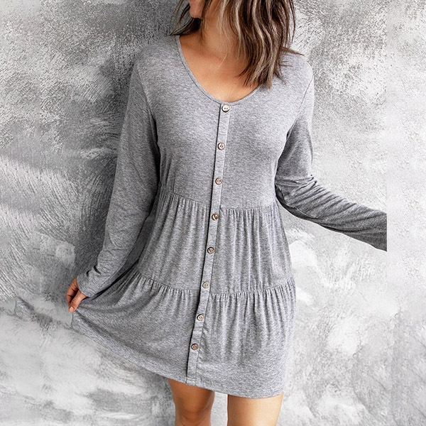 Thanks to the super soft and breathable fabric,you can have an all-day comfort in this dress. It comes with a solid color,the front-button details break the simple and dull design style. Finished with long sleeve and round neck design,this dress is perfect fit for your lazy days and casual weekends.