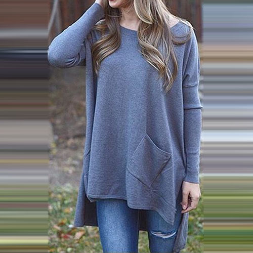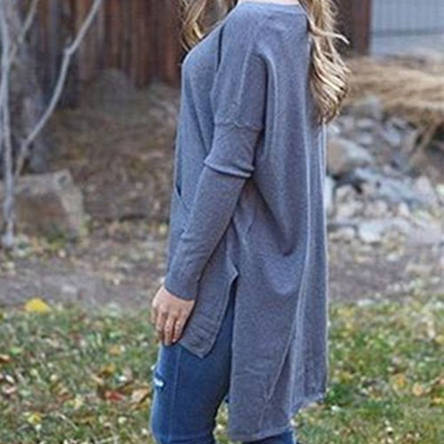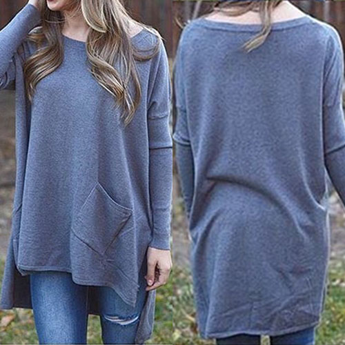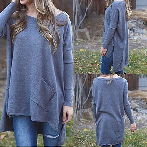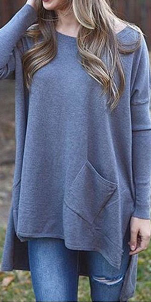 an all-day comfort. And its long sleeve,round neckline and high-low hem design makes this piece look