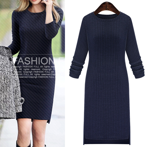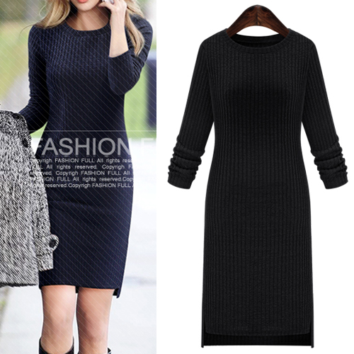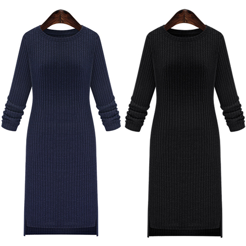 This knit dress is your wardrobe staple in these chilly days. It features solid color style,
