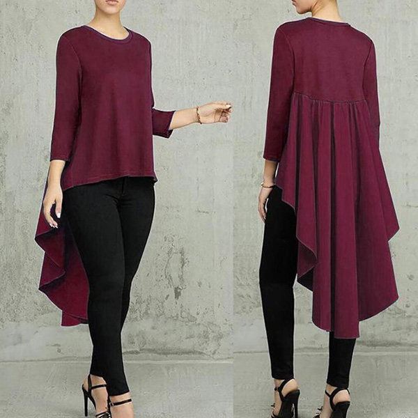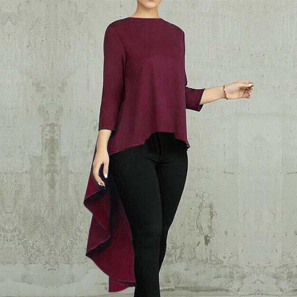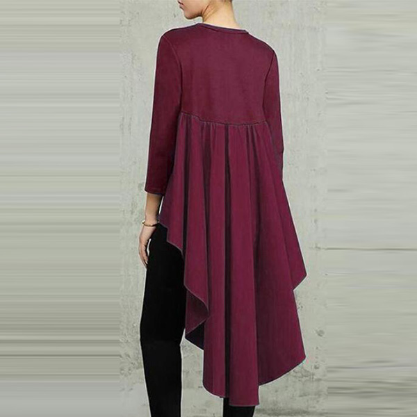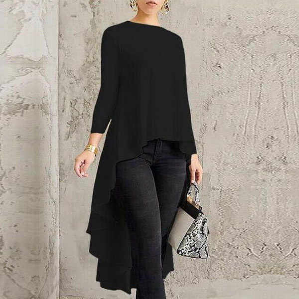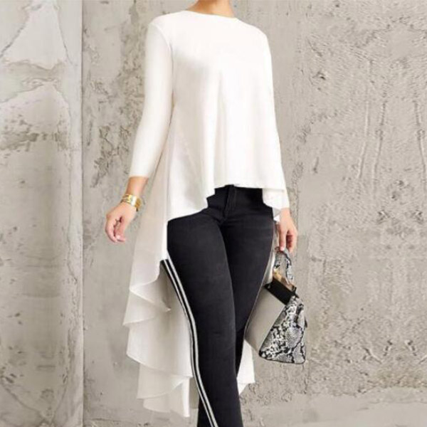 Don't like too simple pieces? Then you can have a try this top. It comes with a solid color,finished with long sleeve,round neck and a high-low hem,this top can give you a comfortable day while it maintains your personality and style.