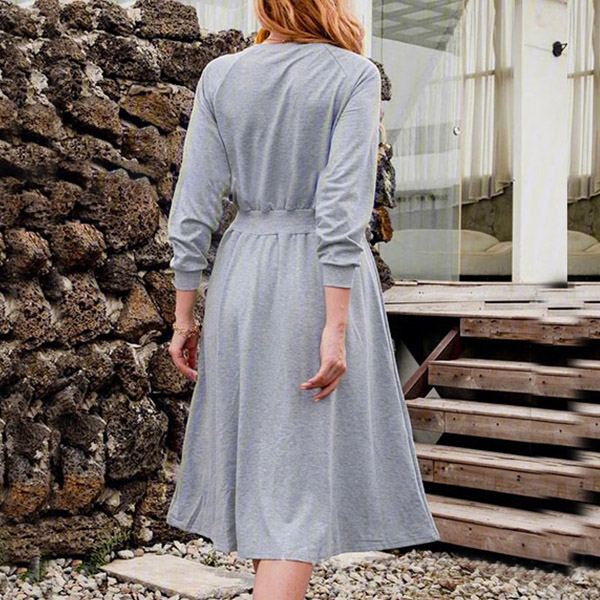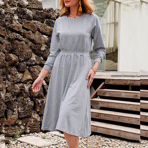 Crafted in a solid color,with long sleeve,round neck and high waist design,this dress can maintain the comfy while it exudes your style and personality. This is a dress which is fit for your busy workdays and weekend out. So why not invite it to your wardrobe?