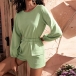 Fashion Solid Color Long Sleeve Round Neck High Waist Romper