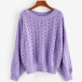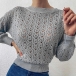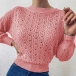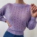 Fashion Solid Color Long Sleeve Round Neck Hollow Out Knit Sweater