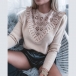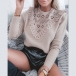 Fashion Solid Color Long Sleeve Round Neck Hollow Out Lace Spliced Knit Top