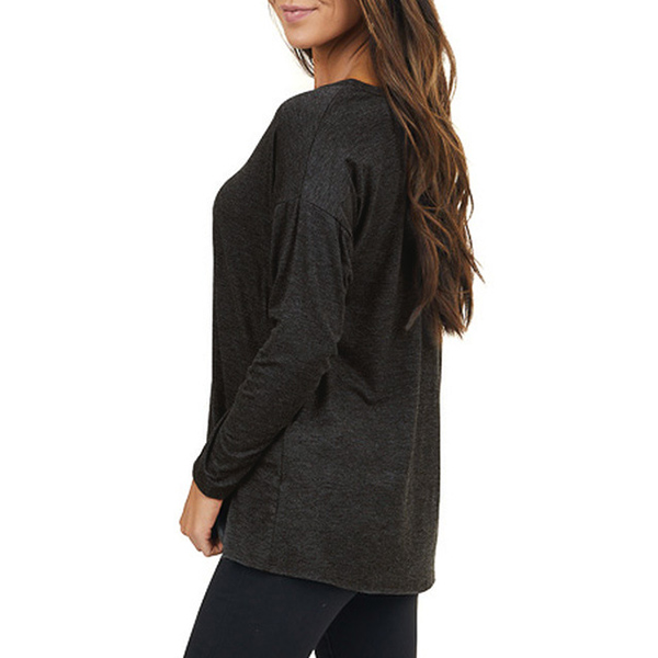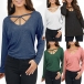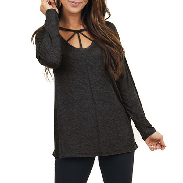 Fashion Solid Color Long Sleeve Round Neck Hollow Out T-shirt