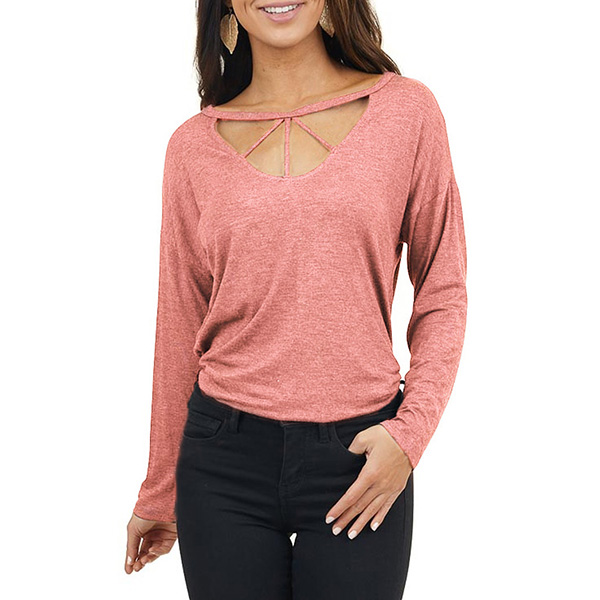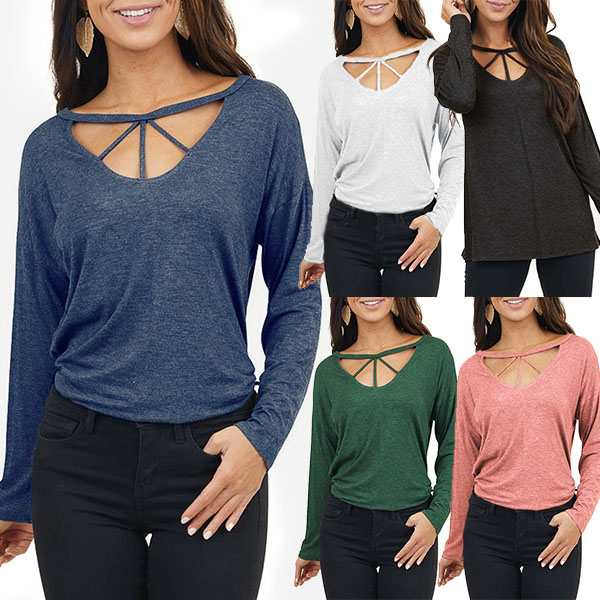 You can create a sassy and flirty daily look by slipping into this t-shirt. Solid color style,crafted from soft and breathable fabric,this piece knows how to give you a comfortable day. Moreover,the hollow out design at the collar part will make this piece look more attractive and distinctive. Attracted? Then invite this piece to your wardrobe!