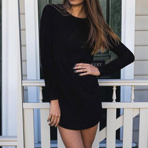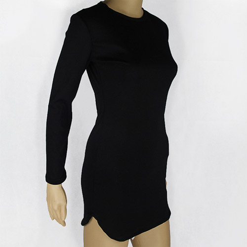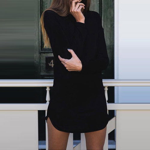 Fashion Solid Color Long Sleeve Round neck Irregular Hem Dress