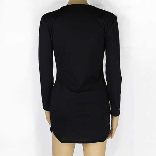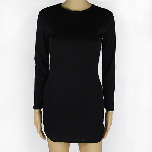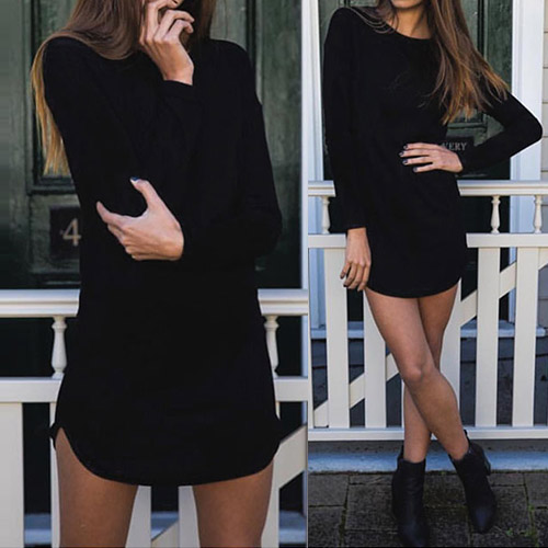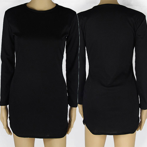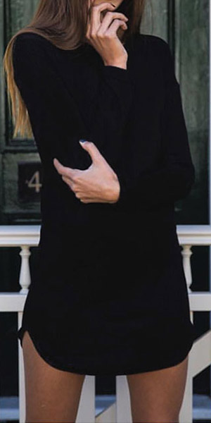 and flattering black color,with long sleeve,round neck and arcuate hem,simple and delicate.