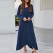 Fashion Solid Color Long Sleeve Round Neck Irregular Hem Dress