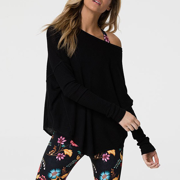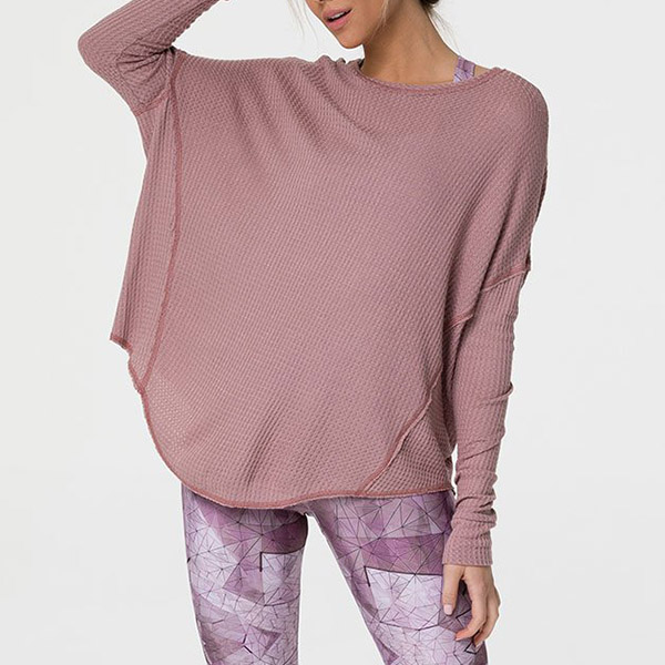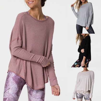 Fashion Solid Color Long Sleeve Round Neck Irregular Hem Loose T-shirt